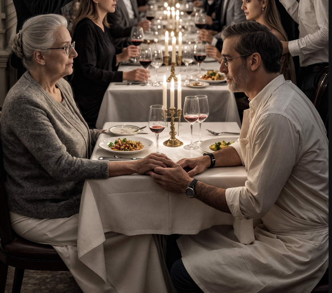 À la table voisine, une dame murmura : « Elle doit être la grand-mère de quelqu’un. C’est émouvant… mais n’est-elle pas un peu hors de propos ici ? »