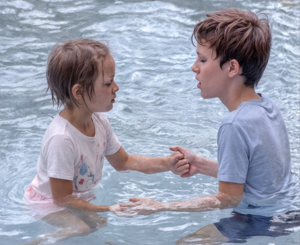 Je me suis retournée pour voir une fillette en t-shirt blanc qui agitait frénétiquement les bras, battant l’eau dans une lutte visible. Sa tête disparaissait sous la surface une fois, puis une deuxième fois. Le temps sembla suspendre son souffle.