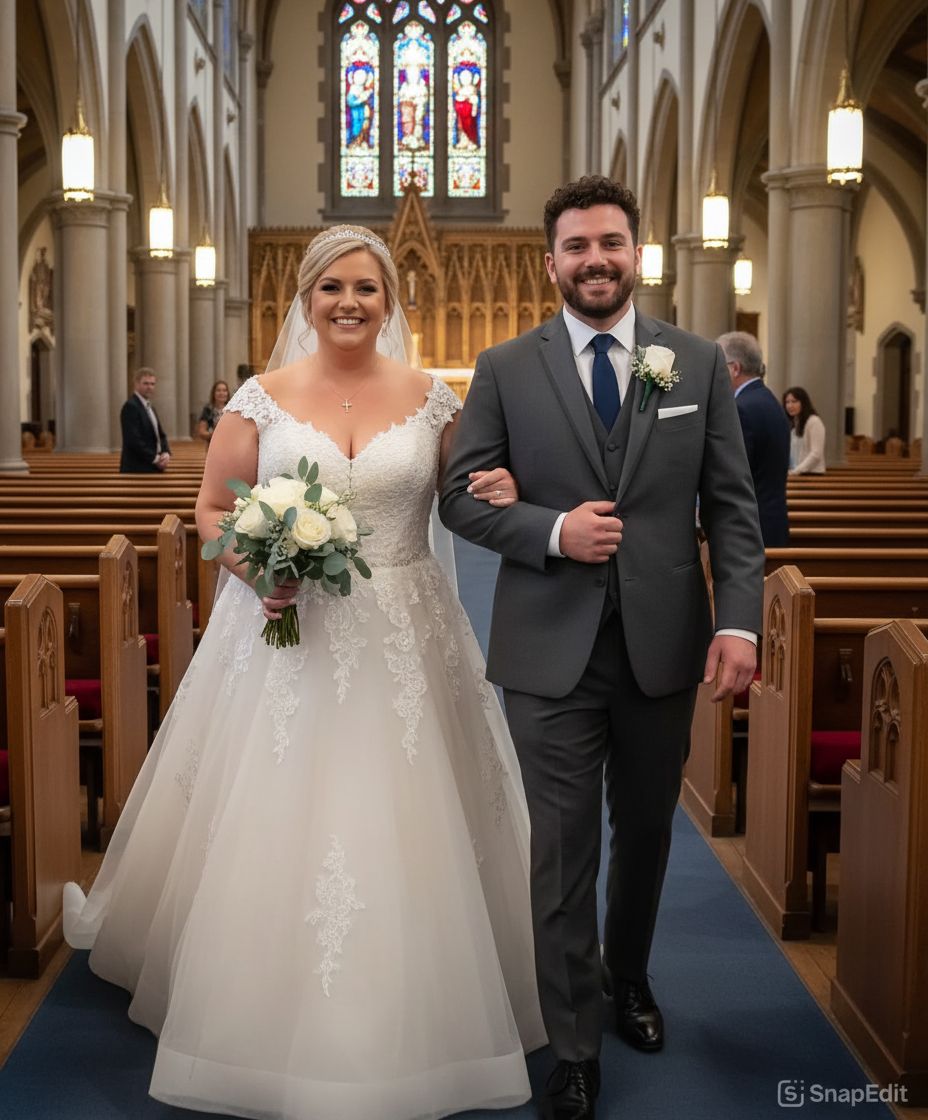 Le jour de la cérémonie, dans l’église aux vitraux étincelants et aux grandes arches romanes, je suis entrée au bras de mon père, la robe blanche traînant derrière moi, le cœur battant la chamade, les invités se retournant pour m’admirer. J’ai fait quelques pas, puis… les portes de l’église ont à nouveau grincé. Je me suis retournée, croyant qu’un retardataire entrait discrètement.