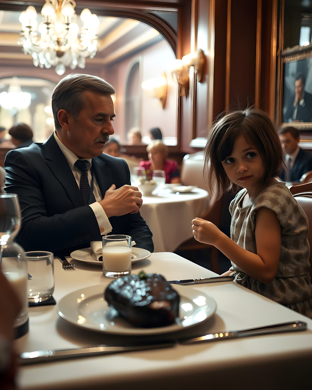 Le restaurant « Petrovich », réputé pour sa cuisine raffinée et son règlement strict sur le code vestimentaire, était le lieu du repas de Morozov. Ce dernier, un homme d’environ soixante ans avec des cheveux grisonnants et une montre luxueuse au poignet, avait la réputation d’être dur et inaccessible. S’il inspirait la crainte à ses rivaux, il suscitait aussi le respect parmi ses alliés, mais peu connaissaient la sensibilité cachée derrière cette façade de fer.