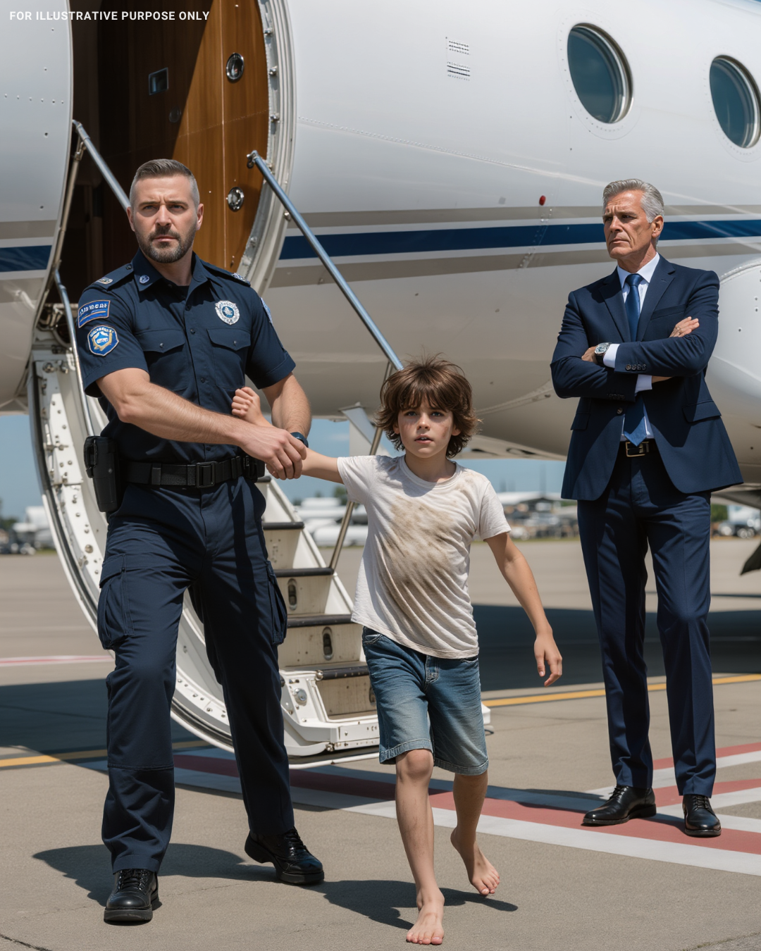 Mais l’enfant, avec encore plus de désespoir, hurla à nouveau : « J’ai vu des hommes manipuler la valve de carburant la nuit dernière ! S’il vous plaît, ne montez pas à bord ! »