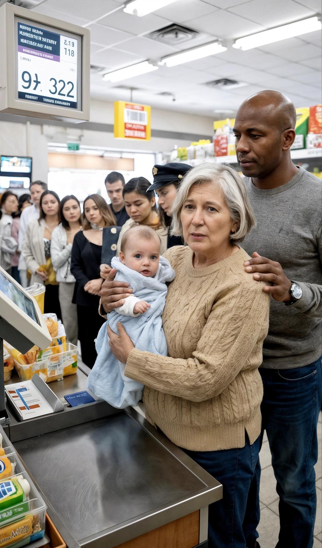 « S’il vous plaît, » dis-je doucement à la caissière, « enlevez les céréales et les fruits. Gardez seulement les couches et le lait en poudre. Je m’en sortirai. »