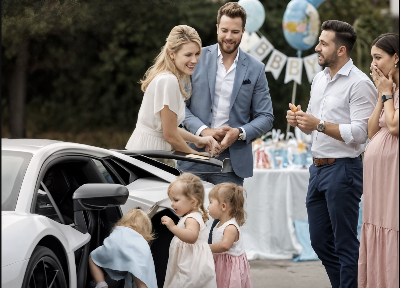 Ces mots flottèrent dans l’atmosphère, aigus et percutants, provoquant un silence immédiat parmi toutes les discussions du jardin ensoleillé. Je vis l’expression du visage de mon ancien mari se décolorer tandis que sa nouvelle compagne, enceinte jusqu’aux yeux, s’accrochait à son bras comme si sa vie en dépendait. Cet homme qui m’avait autrefois jeté des papiers de divorce à la figure, me traitant de « marchandise défectueuse » parce que je ne pouvais pas lui donner d’enfants. À cet instant, il restait immobile, alors que quatre bambins sortaient d’une Lamborghini blanche derrière moi.