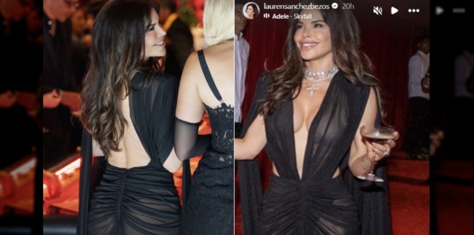 Lauren Sánchez a choisi une robe noire délicate, légère et entièrement ouverte dans le dos, jouant sur la transparence avec une finesse assumée. Son apparition a captivé les invités, mais aussi les réseaux sociaux, où son look a fait monter la tension en quelques minutes.